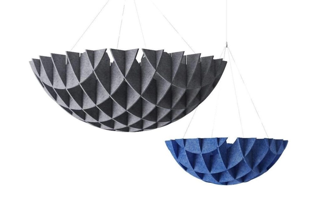 Kokonaisuutta täydensimme Affen riippuvalla akustiikkatuotteella, jolla pyrittiin muodostamaan tilaan sekä visuaalista kerroksellisuutta että akustista laatua. Lisäksi käytimme akustiikkaratkaisuina eri tilojen käyttötarpeisiin ja designiin sopivia akustiikkaverhoja ja -mattoja. Riippuvaa akustiikkaa löytyy valikoimasta valaisimella sekä ilman.